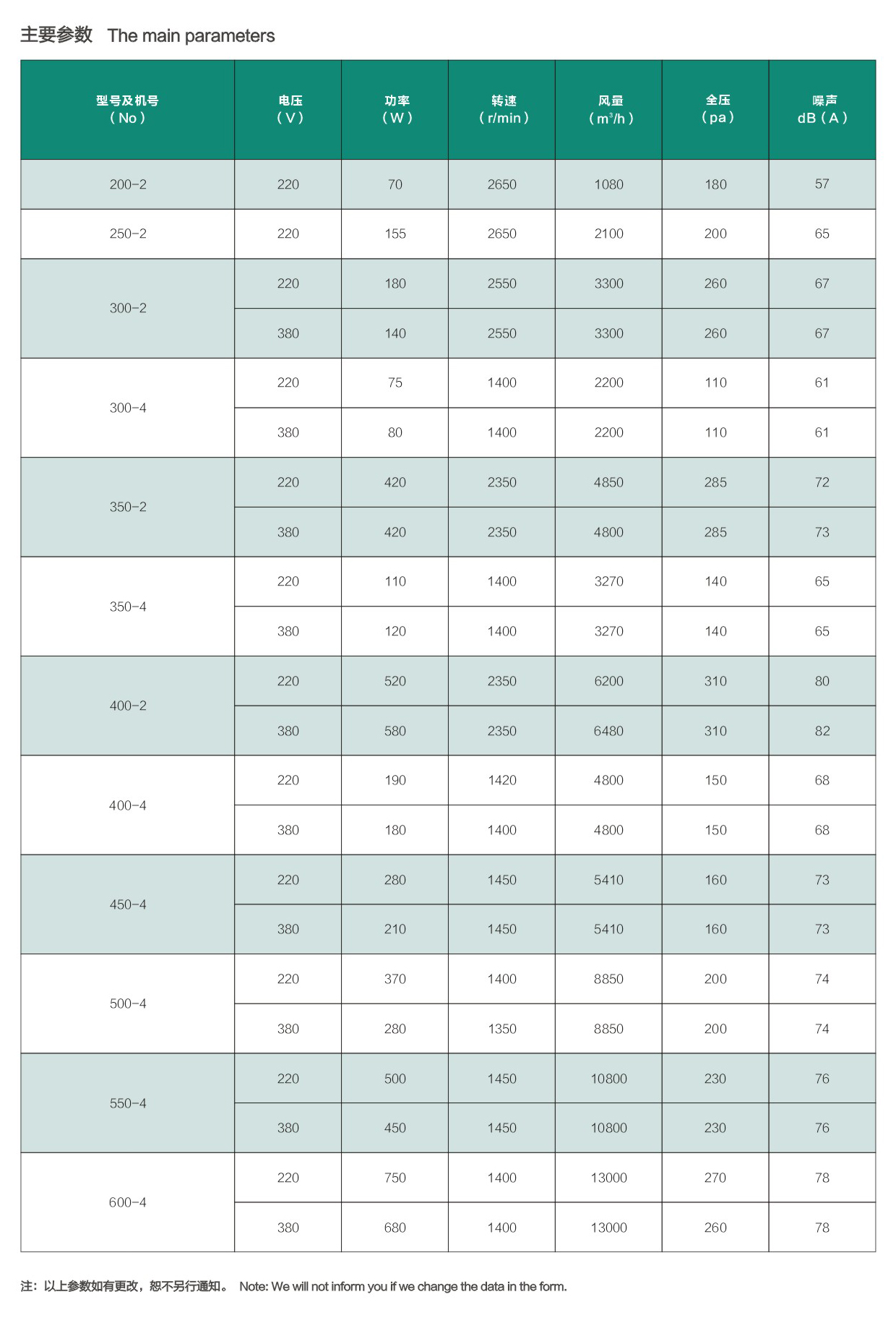 * 电压:单相电容运转风机为220V/50Hz,三相风机为380V/50Hz。我们可以按照客户需求生产不同电压、频率的风机。