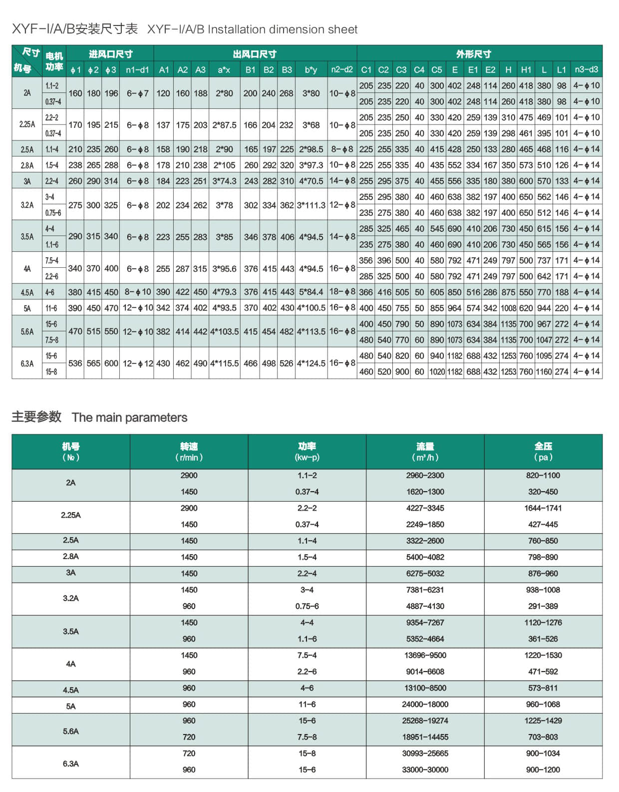 * XYF-I/A/B型系列排油烟低噪声离心通风机是本公司最新研制的新产品,在公司前推出的CF、11-62和12-50三个系列风机的基础上,根据用户 需求及方便用户对风机的维护,本公司对风机进行精心优化设计、制造。使 XYF-I/A/B 型系列风机在原有的基础上提高了压力、流量、压力曲线平稳、 效率高、克服管道阻力能力较强,更适合于高层建筑的通风换气和厨房烟气 排放。(本风机必需在管道阻力大情况下使用)