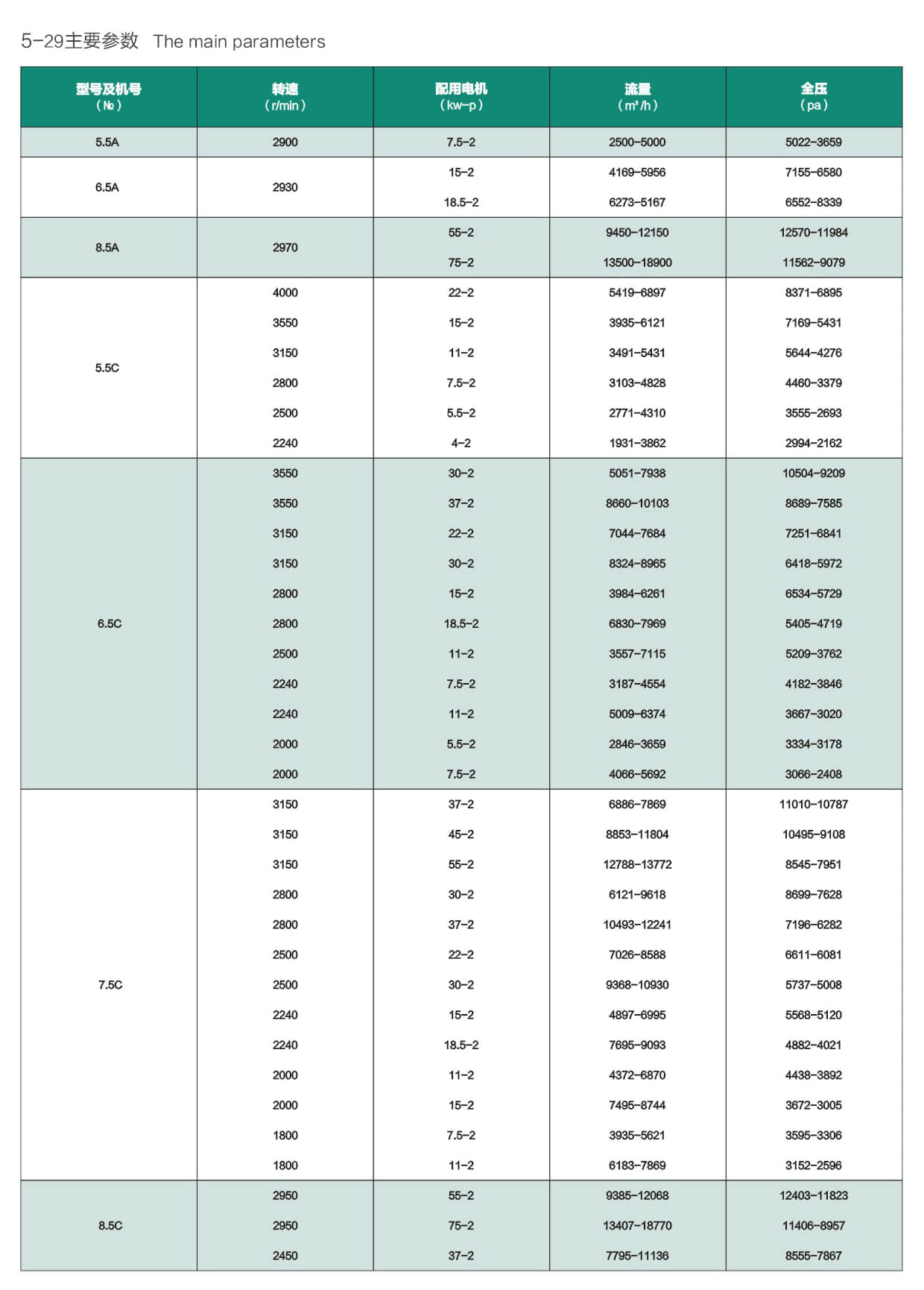 * 5-29型高压离心通风机用于输送下净空气无腐蚀性,不自燃,不含有粘性物质的气体。尤其适用于棉绒加工输送,亦可用于冲天炉吹炼。输送介质温度不超过80℃,含尘量不超过150mg/m³,具有效率高,能耗低的特点。