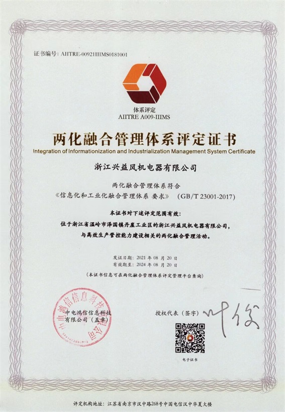 • 1995 Renamed as "Zhejiang Xingyi Ventilator Electrical Appliance Co., Ltd."