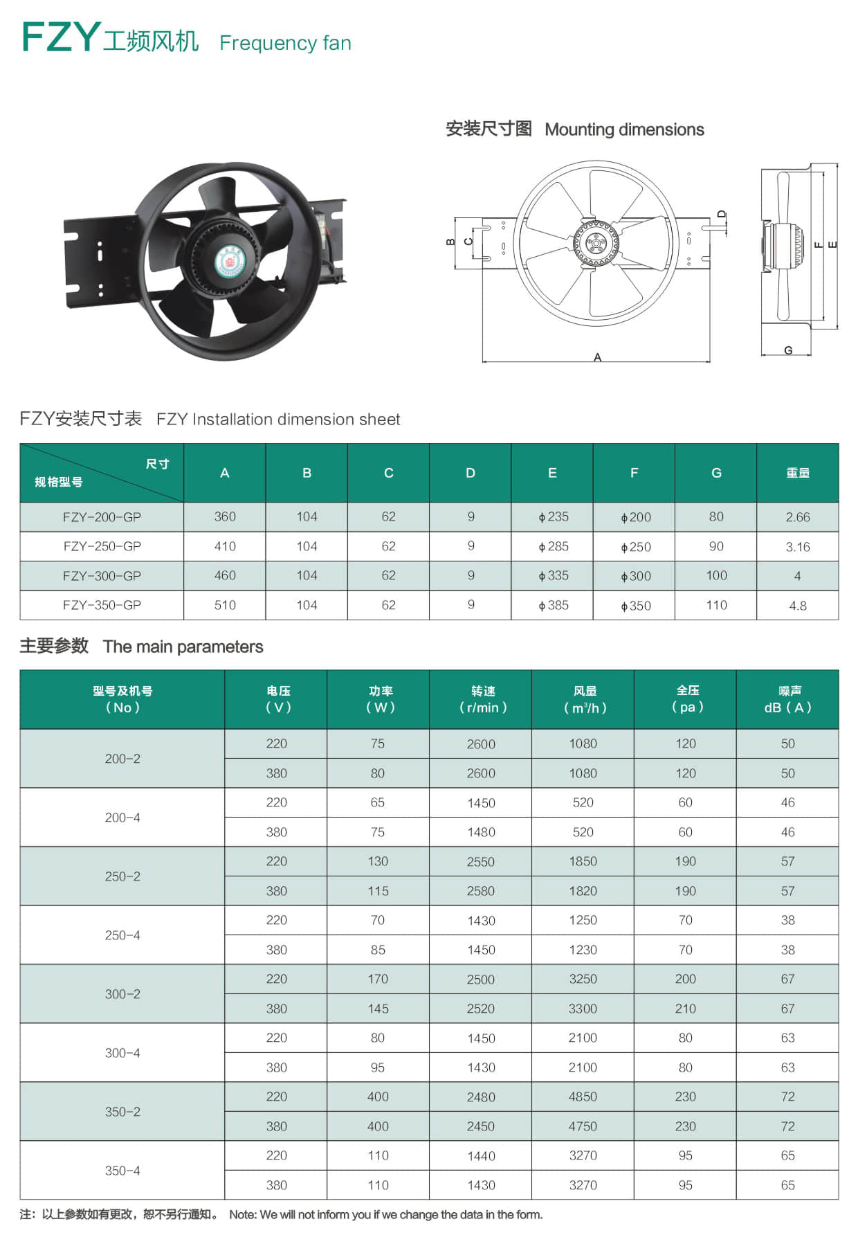 * FZY series of fan-frequency operation is divided into two single-phase and three-phase asynchronous induction capacitor run. Wide坟used for ground control devices, ventilation and cooling of large electronic equipment, cabi-nets, welding and other industries, can also be used in buildings, plant as ventilation, ventilation, purification.