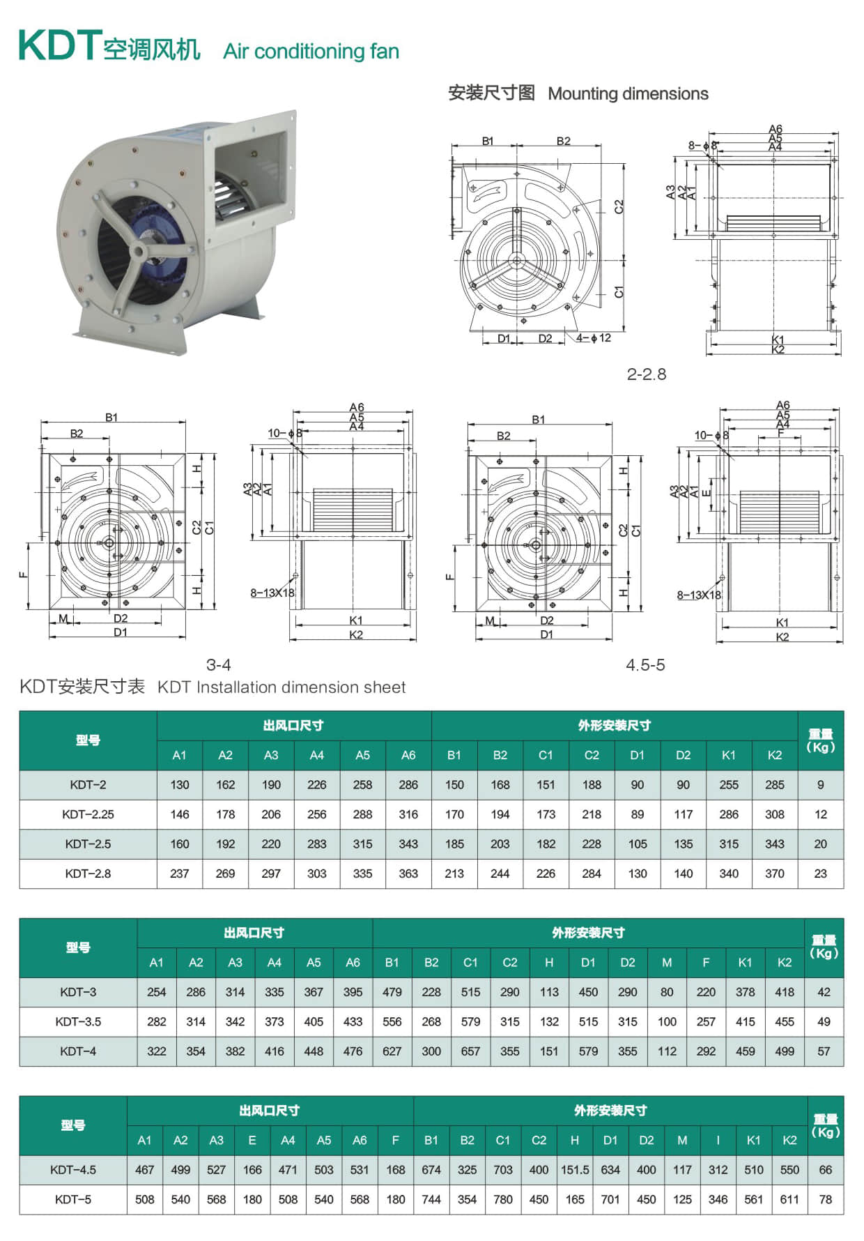 * KDT series fan is running two single-phase and three-phase asynchro-nous induction capacitor run. Widely used in industrial and mining enter- prises, hotels, shopping malls and other ventilation, central air conditioning units, clean air'-conditioning, fan coil units compact package.